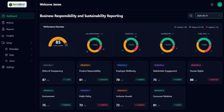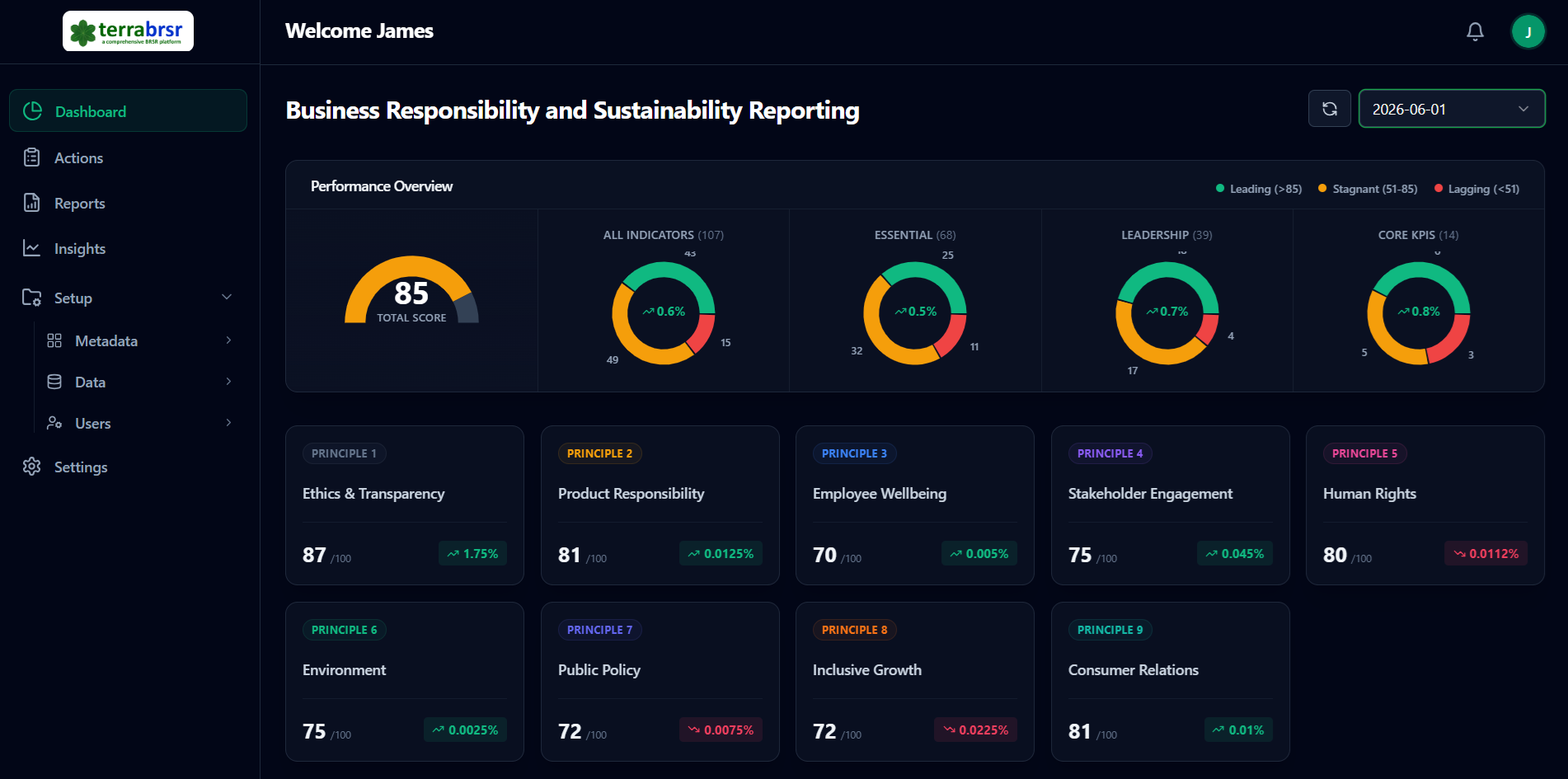 Monitor 100+ BRSR KPIs through a live dashboard.