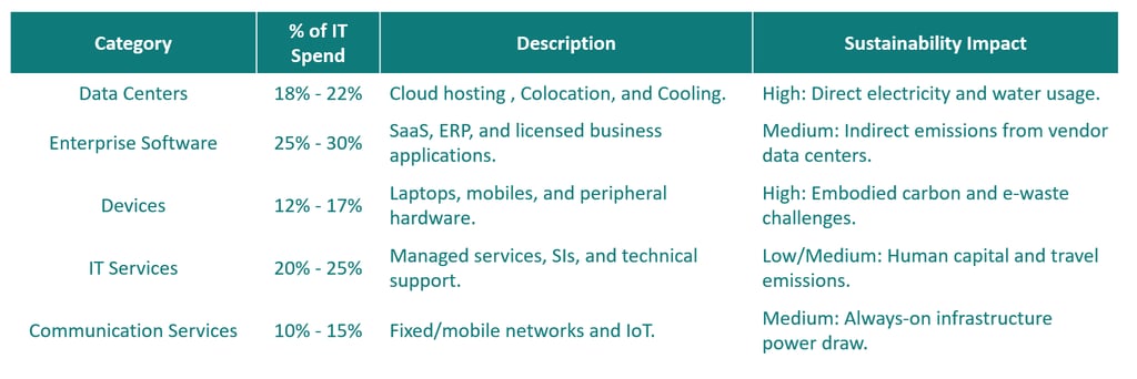 Modern IT budgets are dominated by recurring costs. Understanding the 'Carbon-to-Cost' ratio in these categories is the first step toward a lean & green infrastructure.